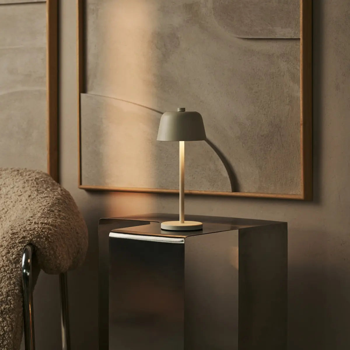Anton Vanilla Rechargeable Table Lamp | Stylish & Cordless Lighting Stylish model: Classic and sleek model. The dimmer button on top of the rechargeable table lamp allows the lamp to adjust to the desired setting.Rechargeable and cordless: Thanks to its rechargeable and cordless design, you can easily move the table lamp without regard to power outlets. The built-in battery is quick to recharge via the included USB cable and provides up to 120 hours of illumination, so you are always assured of adequate lighting.Easy use: The lamp is easy to operate with just one simple touch. This allows you to easily turn the lamp on or off. You have a choice of 3 different light colors (candlelight, mood light and work light), allowing you to always create the right atmosphere, whether you are relaxing, working or just want to light up the room.Dimmable function: The light intensity of the lamp can be adjusted as desired using the touch-dim button which ensures the right ambiance of your choice.Eco-friendly choice: The lamp is crafted of iron, a strong and durable material that is ideal for daily use. Its sustainable design ensures it is suitable for long-term use. Furthermore, iron can withstand hot and cold conditions and is fully recyclable.Applicability: Experience the freedom of cordless lighting and the timeless elegance of the Anton. It has the perfect combination of style and functionality. Specifications Dimensions: 12 cm Ø, 29 cm high Material: Metal iron Battery: 5200 mAh (10 to 120 hours, depending on use dimming function) Light modes: 3 (2700K-4000K-6000K) Classification: IP 54 (water-repellent and dust-free) Handmade, anti-slip, cordless & easy dimmable USB-C rechargeable, cable included