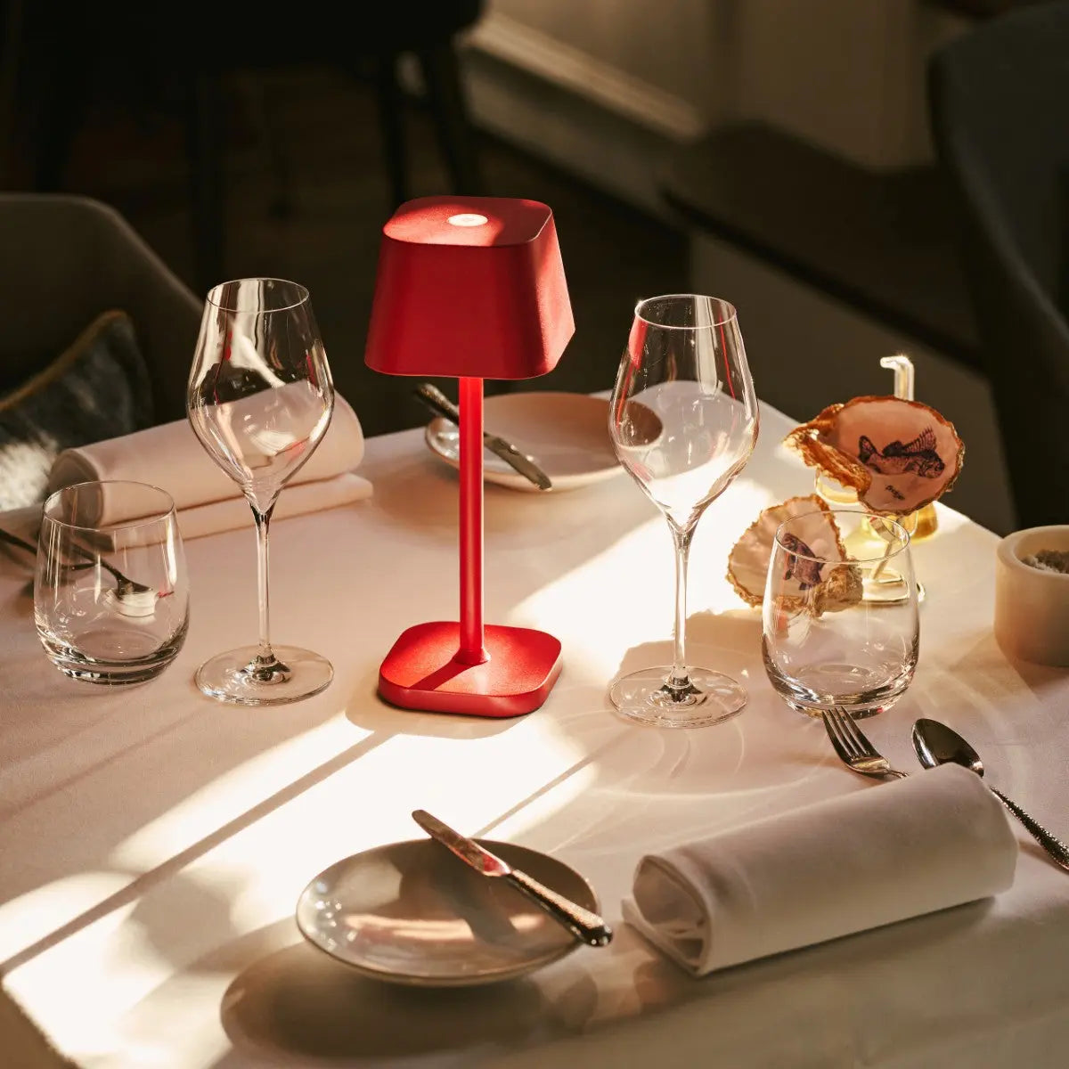 Ava Berry Red – Rechargeable Table Lamp | Stylish, Cordless & Dimmable Stylish model: The Tavellio Ava red rechargeable table lamp is a stylish lighting option that can be effortlessly placed anywhere.Rechargeable and cordless: Thanks to its rechargeable and cordless design, you can easily move the table lamp without regard to power outlets. The built-in battery is quick to recharge via the included USB cable and provides up to 120 hours of illumination, so you are always assured of adequate lighting. Easy use: The lamp is easy to operate with just one simple touch. This allows you to easily turn the lamp on or off. You have a choice of 3 different light colors (candlelight, mood light and work light), allowing you to always create the right atmosphere, whether you are relaxing, working or just want to light up the room.Dimmable function: The light intensity of the lamp can be adjusted as desired using the touch-dim button which ensures the right ambiance of your choice. Eco-friendly choice: The lamp is crafted of iron, a strong and durable material that is ideal for daily use. Its sustainable design ensures it is suitable for long-term use. Furthermore, iron can withstand hot and cold conditions and is fully recyclable.Applicability: This cordless lamp adds a polished finish to your interior, avoiding annoying cables. With its flexibility, this light effortlessly adapts to any situation and creates the perfect atmosphere wherever you want. Specifications• Dimensions: 12 cm Ø, 30 cm high • Material: Metal iron• Battery: 5200 mAh (10 to 120 hours, depending on use dimming function)• Light modes: 3 (2700K-4000K-6000K)• Classification: IP 54: (water-repellent and dust-free)• Handmade, anti-slip, cordless & easy dimmable• USB-C rechargeable, cable included• Specifications may vary depending on the color of the lamp