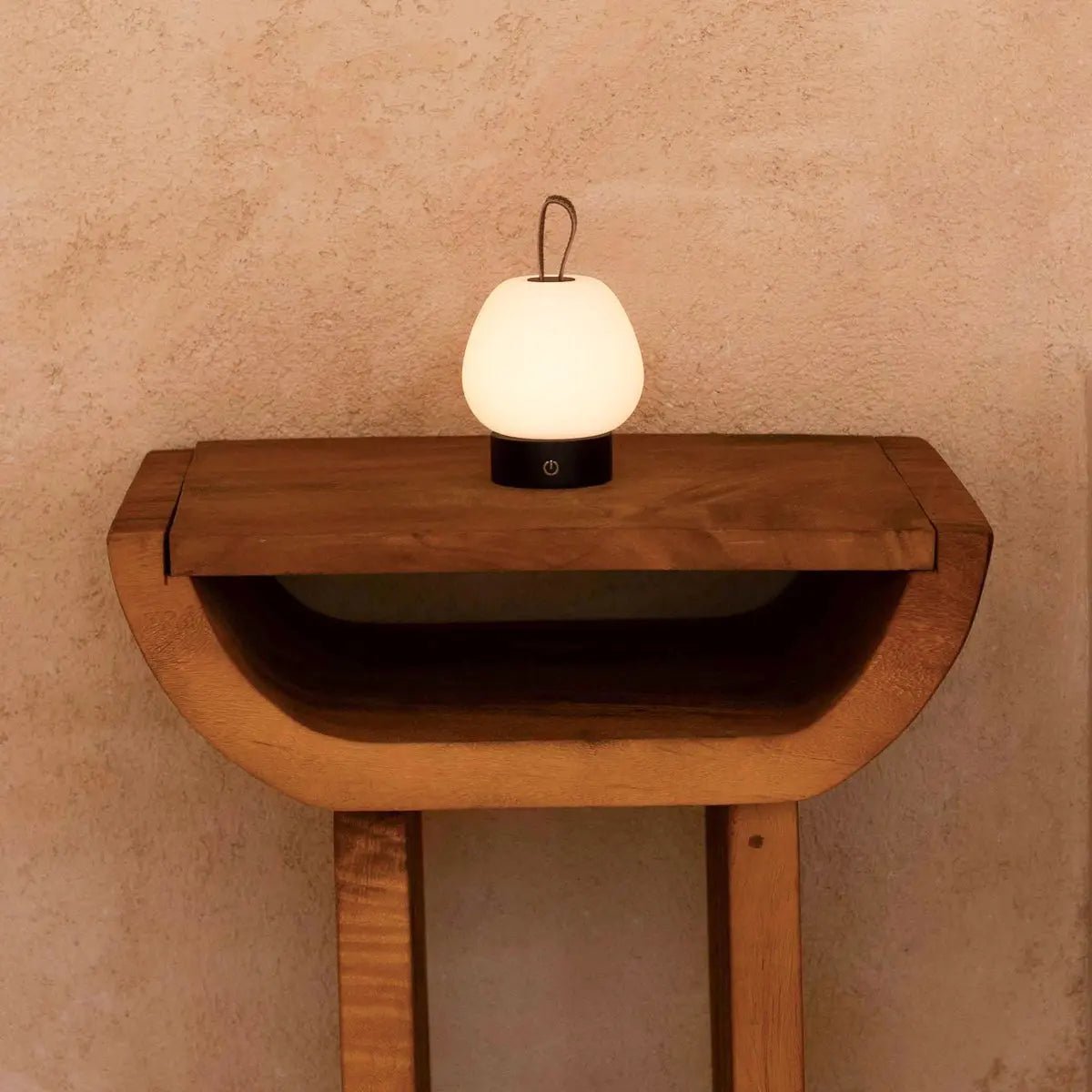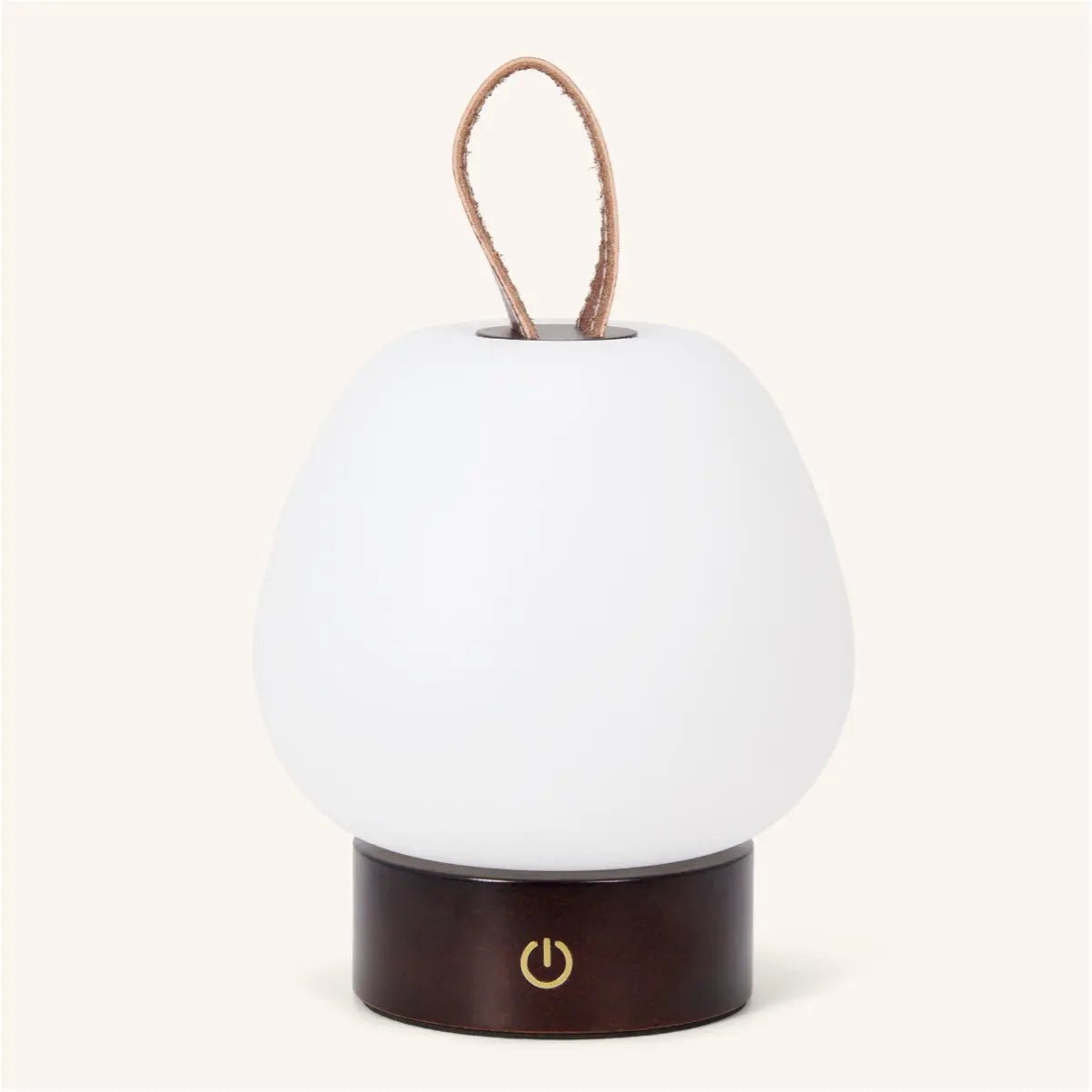Cooper Dark Brown Wooden Rechargeable Table Lamp – Cordless, Dimmable & Stylish Stylish model: The Cooper is the little gem of the collection and shines with sophistication. Available in both light brown and dark brown, the Cooper dark brown wooden rechargeble table lamp is a unique lamp that makes a subtle statement with its leather strap.Rechargeable and cordless: Thanks to its rechargeable and cordless design, you can easily move the table lamp without regard to power outlets. The built-in battery is quick to recharge via the included USB cable and provides up to 30 hours of illumination, so you are always assured of adequate lighting.Easy use: The lamp is easy to operate with just one simple touch. This allows you to easily turn the lamp on or off. You have a choice of 3 different light colors (candlelight, mood light and work light), allowing you to always create the right atmosphere, whether you are relaxing, working or just want to light up the room.Dimmable function: The light intensity of the lamp can be adjusted as desired using the touch-dim button which ensures the right ambiance of your choice.Eco-friendly choice: The lamp is crafted of rubberwood, one of the most eco-friendly woods. It contributes to a circular wood industry because it is only used after the full life of the tree. Its use promotes sustainable forest management and helps reduce waste. The lamp has low power consumption.Applicability: This cordless lamp is an addition to your interior, avoiding annoying cables. With its flexibility, this lamp effortlessly adapts to any situation and creates the perfect atmosphere wherever you want. Specifications · Dimensions: 12 cm Ø and 17 cm high · Material: Rubberwood, polythene, leather · Battery: 2000 MaH (4 to 30 hours, depending on use dimming function) · Light modes: 3 (2700K-4000K-6000K) · Classification: IP 44: (dust and water splash proof) · Handmade, anti-slip, cordless & easy dimmable · USB-C rechargeable, cable included