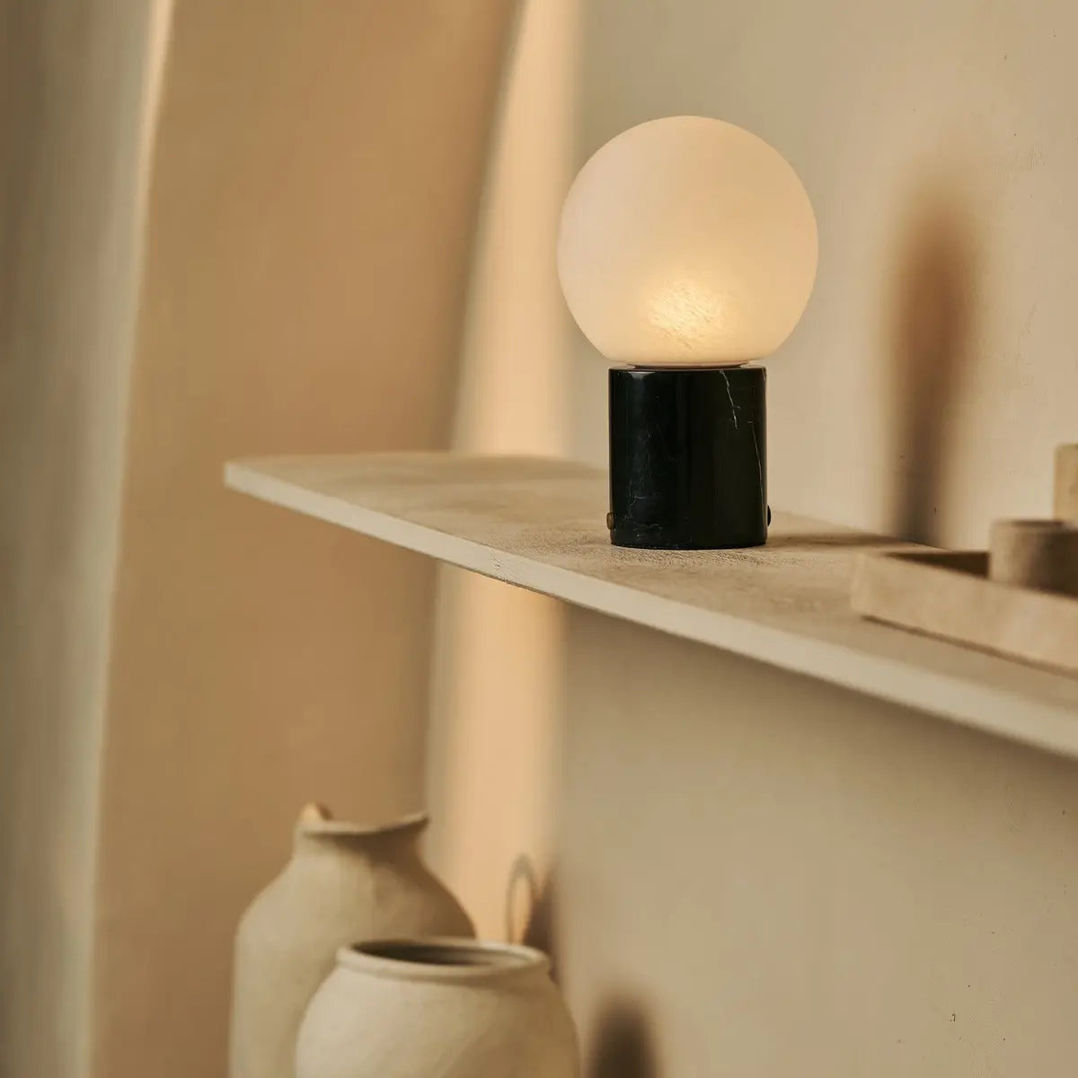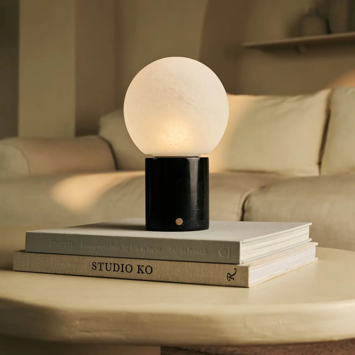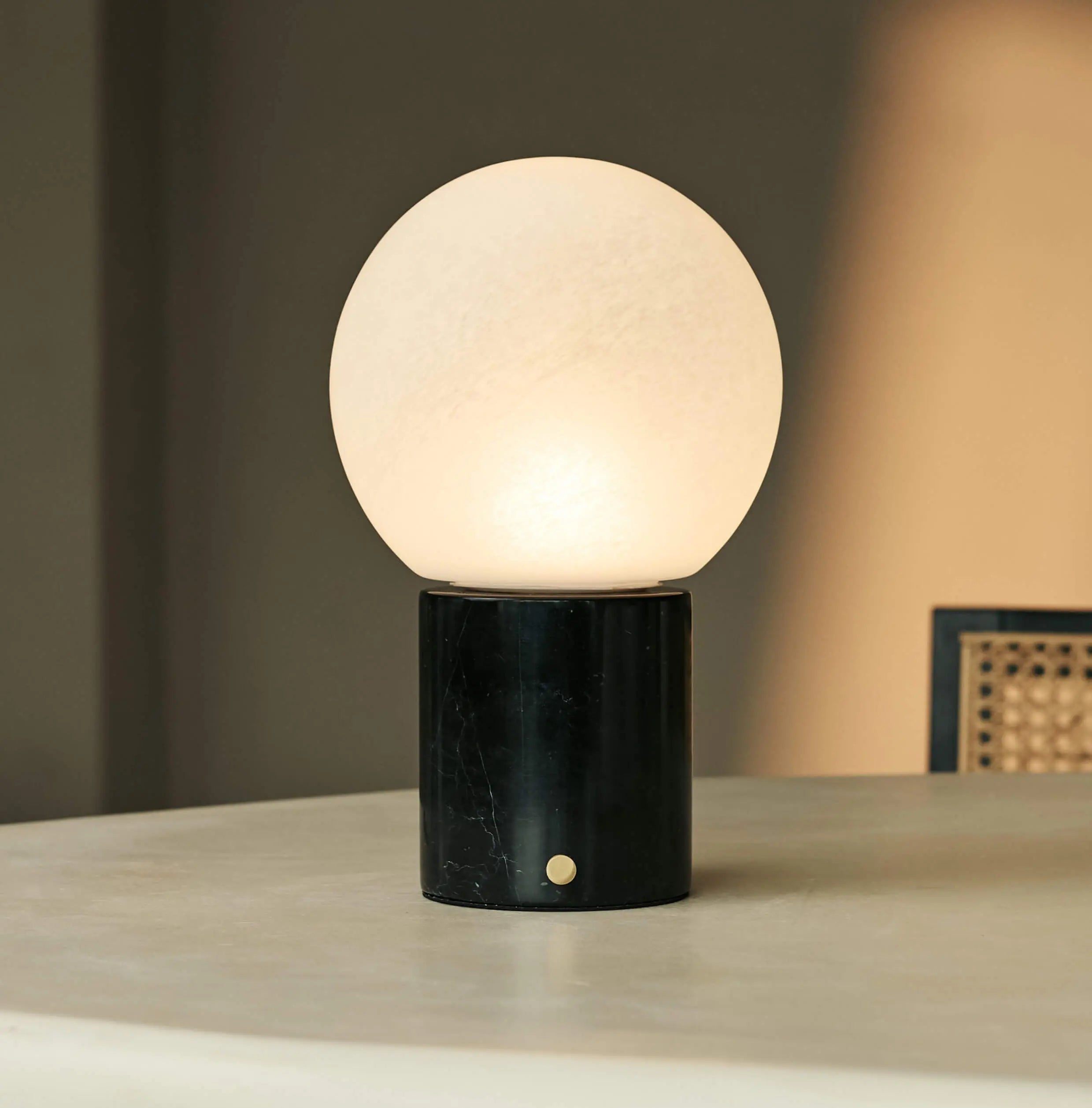 Metsu Black / Nero Marquina – Classic Marble Rechargeable Table Lamp with 3 Light Colors & Dimming Function Stylish model: The Metsu is part of our Rijks Collection. Each table lamp is crafted from solid marble, making every piece truly one of a kind. The natural veining and deep color variations give each lamp a unique and exclusive look. This lamp features an interchangeable lampshade, allowing you to easily change its style and ambiance. Switch from glass to fabric, matching the season or your interior.Modular design: This lamp features an interchangeable lampshade, allowing you to effortlessly change the style and ambiance. Switch from glass to fabric, matching to the season or your interior.Rechargeable and cordless: Thanks to its rechargeable and cordless design, you can easily move the table lamp without regard to power outlets. The built-in battery is quick to recharge via the included USB cable and provides up to 100 hours of illumination, so you are always assured of adequate lighting.Easy use: The lamp is easy to operate with just one simple touch. This allows you to easily turn the lamp on or off. You have a choice of 3 different light colors (candlelight, mood light and work light), allowing you to always create the right atmosphere, whether you are relaxing, working or just want to light up the room.Dimmable function: The light intensity of the lamp can be adjusted as desired using the touch-dim button which ensures the right ambiance of your choice.Eco-friendly choice: The lamp is made of marble. Marble is a timeless and durable natural material known for its elegant appearance and long lifespan. It is strong, wear-resistant, and retains its beauty for many years, making it a responsible choice.Applicability: The Metsu brings timeless elegance to your interior, completely wireless for ultimate ease of use. Crafted from unique solid marble, this lamp effortlessly enhances any space and creates the perfect atmosphere wherever you place it. Specifications · Dimensions: 15 cm Ø, 24 cm high · Material: Marble Nero Marquina, glass · Battery: 6000 mAh (10 to 100 hours, depending on use dimming function) · Light modes: 3 (2700K-4000K-6000K) · Classification: IP 20: (suitable for dry indoor areas) · Handmade, anti-slip, cordless & easy dimmable · USB-C rechargeable, cable included · Modular design features a replaceable lampshade