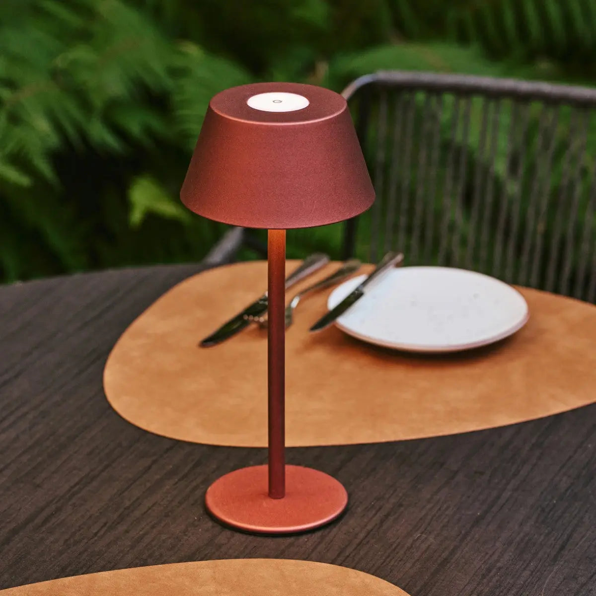 Milou Bronze – Table lamp without Cable l Modern, Design & 3 Light modes Stylish model: This table lamp without cable has a stable design and a warm, inviting look. The light radiates atmospherically upwards, and thanks to the dimming function and multiple light modes, you can easily adjust the lighting to your preference.Rechargeable and cordless: Thanks to its rechargeable and cordless design, you can easily move the table lamp without regard to power outlets. The built-in battery is quick to recharge via the included USB cable and provides up to 120 hours of illumination, so you are always assured of adequate lighting.Easy use: The lamp is easy to operate with just one simple touch. This allows you to easily turn the lamp on or off. You have a choice of 3 different light colors (candlelight, mood light and work light), allowing you to always create the right atmosphere, whether you are relaxing, working or just want to light up the room.Dimmable function: The light intensity of the lamp can be adjusted as desired using the touch-dim button which ensures the right ambiance of your choice.Eco-friendly choice: The lamp is crafted of iron, a strong and durable material that is ideal for daily use. Its sustainable design ensures it is suitable for long-term use. Furthermore, iron can withstand hot and cold conditions and is fully recyclable.Applicability: Dimmable, rechargeable and stylish: this table lamp without cable is ideal for restaurants and living rooms. Just need to choose your favorite color. Specifications · Dimensions: 10 cm Ø, 30 cm high · Material: Metal iron · Battery: 5200 mAh (10 to 120 hours, depending on use dimming function) · Light modes: 3 (2700K-4000K-6000K) · Classification: IP 54: (water-repellent and dust-free) · Handmade, anti-slip, cordless & easy dimmable · USB-C rechargeable, cable included