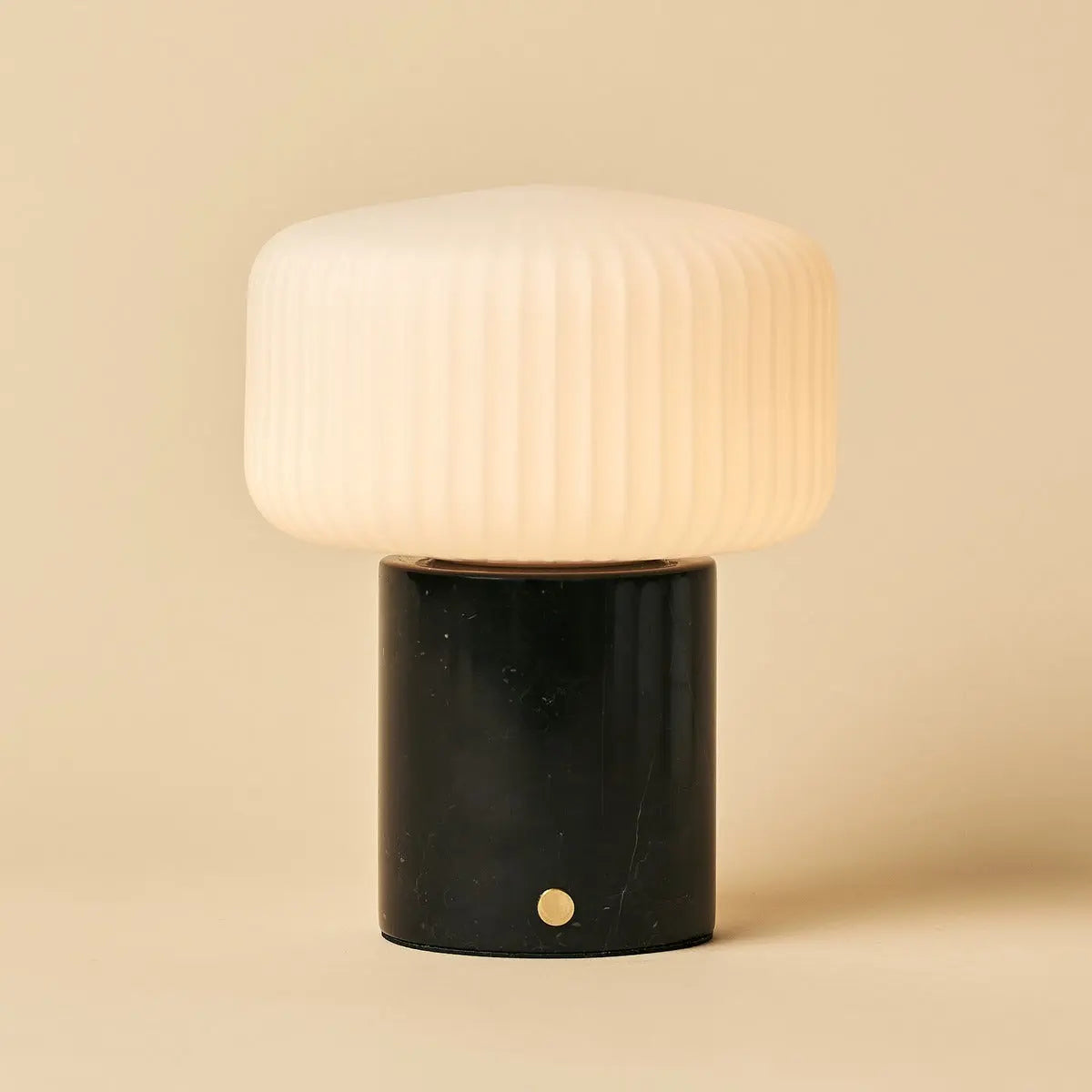 Renoir Black / Nero Marquina – Marble Rechargeable Table Lamp – Cordless, USB Rechargeable & Up to 100 Hours of Illumination Stylish model: The Renoir is part of our Rijks Collection. Each table lamp is crafted from solid marble, making every piece truly one of a kind. The natural veining and deep color variations give each lamp a unique and exclusive look. This lamp features an interchangeable lampshade, allowing you to easily change its style and ambiance. Switch from glass to fabric, matching the season or your interior.Modular design: This lamp features an interchangeable lampshade, allowing you to effortlessly change the style and ambiance. Switch from glass to fabric, matching to the season or your interior.Rechargeable and cordless: Thanks to its rechargeable and cordless design, you can easily move the table lamp without regard to power outlets. The built-in battery is quick to recharge via the included USB cable and provides up to 100 hours of illumination, so you are always assured of adequate lighting.Easy use: The lamp is easy to operate with just one simple touch. This allows you to easily turn the lamp on or off. You have a choice of 3 different light colors (candlelight, mood light and work light), allowing you to always create the right atmosphere, whether you are relaxing, working or just want to light up the room.Dimmable function: The light intensity of the lamp can be adjusted as desired using the touch-dim button which ensures the right ambiance of your choice.Eco-friendly choice: The lamp is made of marble. Marble is a timeless and durable natural material known for its elegant appearance and long lifespan. It is strong, wear-resistant, and retains its beauty for many years, making it a responsible choice.Applicability: The Renoir combines style and functionality in one elegant lamp. Its marble base with refined glass adds a touch of luxury to any interior, while the versatile design ensures it fits perfectly in any space. A true eye-catcher and a practical addition to your home. Specifications · Dimensions: 16 cm Ø, 20 cm high · Material: Marble Nero Marquina, glass · Battery: 6000 mAh (10 to 100 hours, depending on use dimming function) · Light modes: 3 (2700K-4000K-6000K) · Classification: IP 20: (suitable for dry indoor areas) · Handmade, anti-slip, cordless & easy dimmable · USB-C rechargeable, cable included · Modular design features a replaceable lampshade