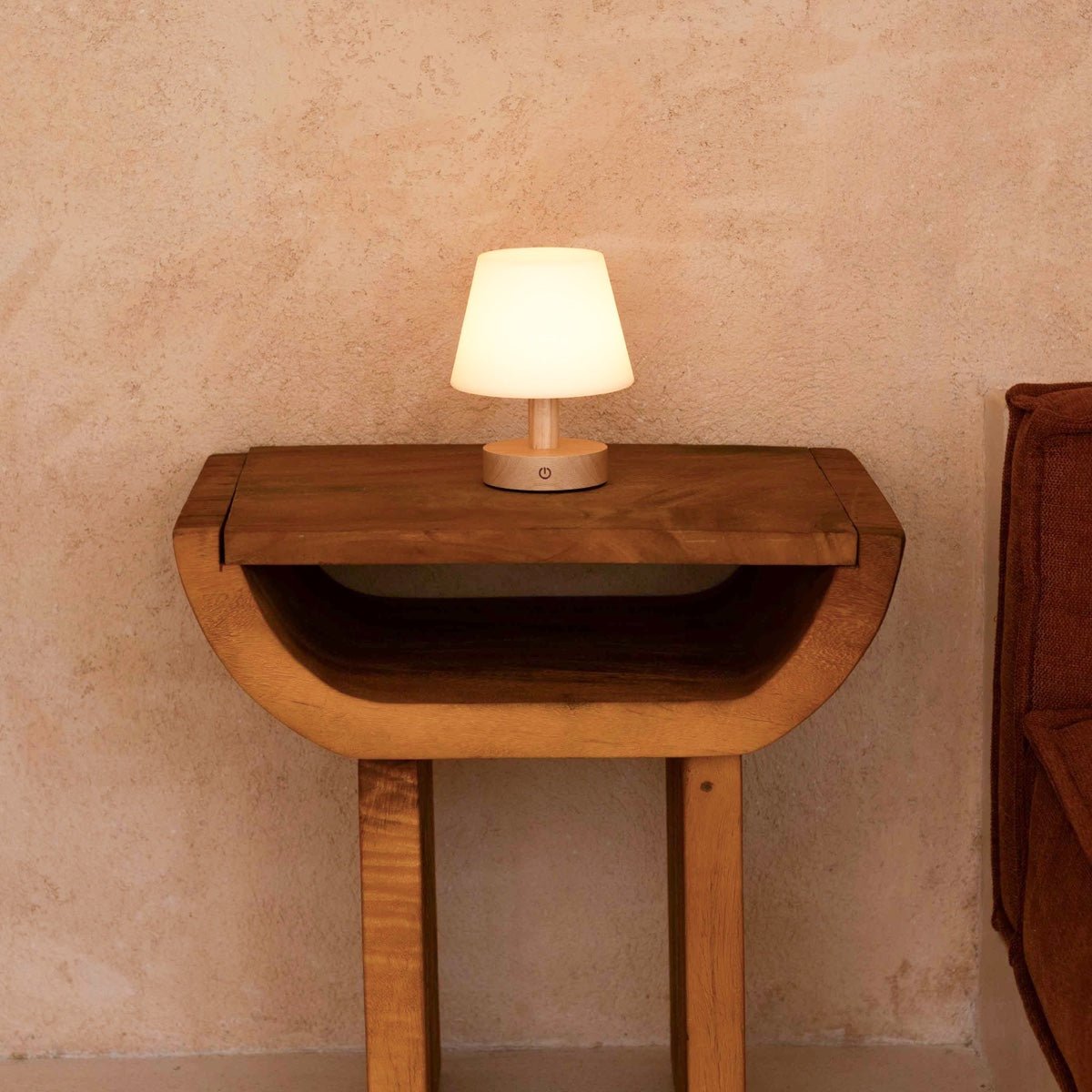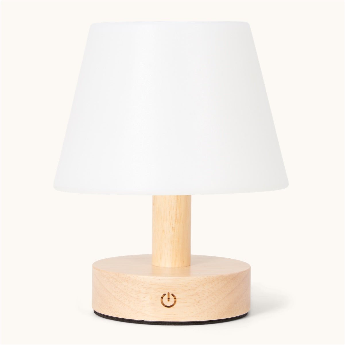 Teddy Light Brown Wooden Rechargeable Table Lamp – Dimmable, USB-C, 100-Hour Battery Life Stylish model: the Teddy is a wooden rechargeable table lamp with a fine appearance and dimmable function. The lamp is available in five different colors. Rechargeable and cordless: Thanks to its rechargeable and cordless design, you can easily move the table lamp without regard to power outlets. The built-in battery is quick to recharge via the included USB cable and provides up to 100 hours of illumination, so you are always assured of adequate lighting. Easy use: The rechargeable table lamp is easy to operate with just one simple touch. This allows you to easily turn the lamp on or off. You have a choice of 3 different light colors (candlelight, mood light and work light), allowing you to always create the right atmosphere, whether you are relaxing, working or just want to light up the room.Dimmable function: The light intensity of the lamp can be adjusted as desired using the touch-dim button which ensures the right ambiance of your choice. Eco-friendly choice: The lamp is crafted of rubberwood, one of the most eco-friendly woods. It contributes to a circular wood industry because it is only used after the full life of the tree. Its use promotes sustainable forest management and helps reduce waste. The lamp has low power consumption.Applicability: In any setting, this fantastic rechargeable table lamp comes into its own, a subtle addition that effortlessly strikes the perfect balance between contemporary design and timeless class. A valuable asset for lovers of sophisticated designs and high-quality functionality. Specifications · · Dimensions: 15 cm Ø and 18 cm high · Material: Rubberwood, polythene · Battery: 5000 mAh (10 to 100 hours, depending on use dimming function) · Light modes: 3 (2700K-4000K-6000K) · Classification: IP 44: (dust and water splash proof) · Handmade, anti-slip, cordless & easy dimmable · USB-C rechargeable, cable included
