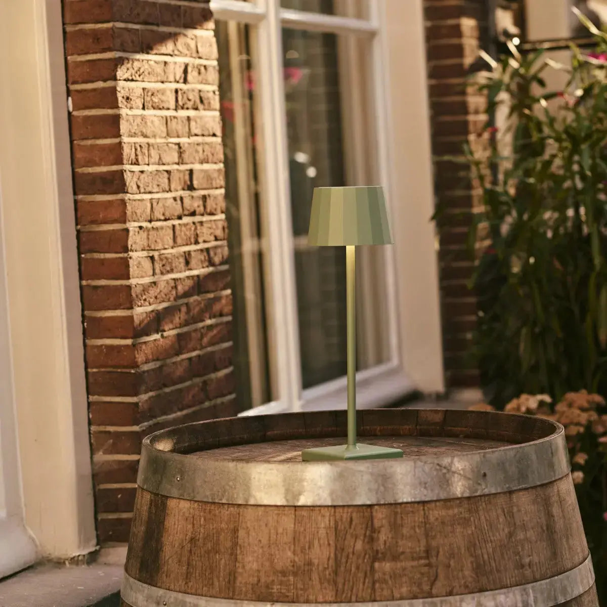 Wouter Sage Green Rechargeable Table Lamp – Wireless Charging, Dimmable, 120-Hour Battery Life Stylish model: This green rechargeable table lamp is a sophisticated and timeless design.Rechargeable and cordless: Thanks to its rechargeable and cordless design, you can easily move the table lamp without regard to power outlets. The built-in battery is quick to recharge via the included USB cable or the wireless charging pad. The battery provides up to 120 hours of illumination, so you are always assured of adequate lighting. Easy use: The lamp is easy to operate with just one simple touch. This allows you to easily turn the lamp on or off. You have a choice of 3 different light colors (candlelight, mood light and work light), allowing you to always create the right atmosphere, whether you are relaxing, working or just want to light up the room.Dimmable function: The light intensity of the lamp can be adjusted as desired using the touch-dim button which ensures the right ambiance of your choice. Eco-friendly choice: The lamp is crafted of iron, a strong and durable material that is ideal for daily use. Its sustainable design ensures it is suitable for long-term use. Furthermore, iron can withstand hot and cold conditions and is fully recyclable.Applicability: Experience the freedom of cordless lighting and the timeless elegance of the Wouter. The lamp can be charged via the supplied USB-C cable or via one of our wireless charging stations, which are not supplied as standard but can be ordered separately. Specifications• Dimensions: 10 cm Ø, 38 cm high • Material: Metal Iron• Battery: 5200 mAh (10 to 120 hours, depending on use dimming function)• Light modes: 3 (2700K-4000K-6000K)• Classification: IP 54: (water-repellent and dust-free)• Handmade, anti-slip, cordless & easy dimmable• Rechargeable via the supplied USB-C cable or via the charging station (not supplied as standard)• Specifications may vary depending on the color of the lamp