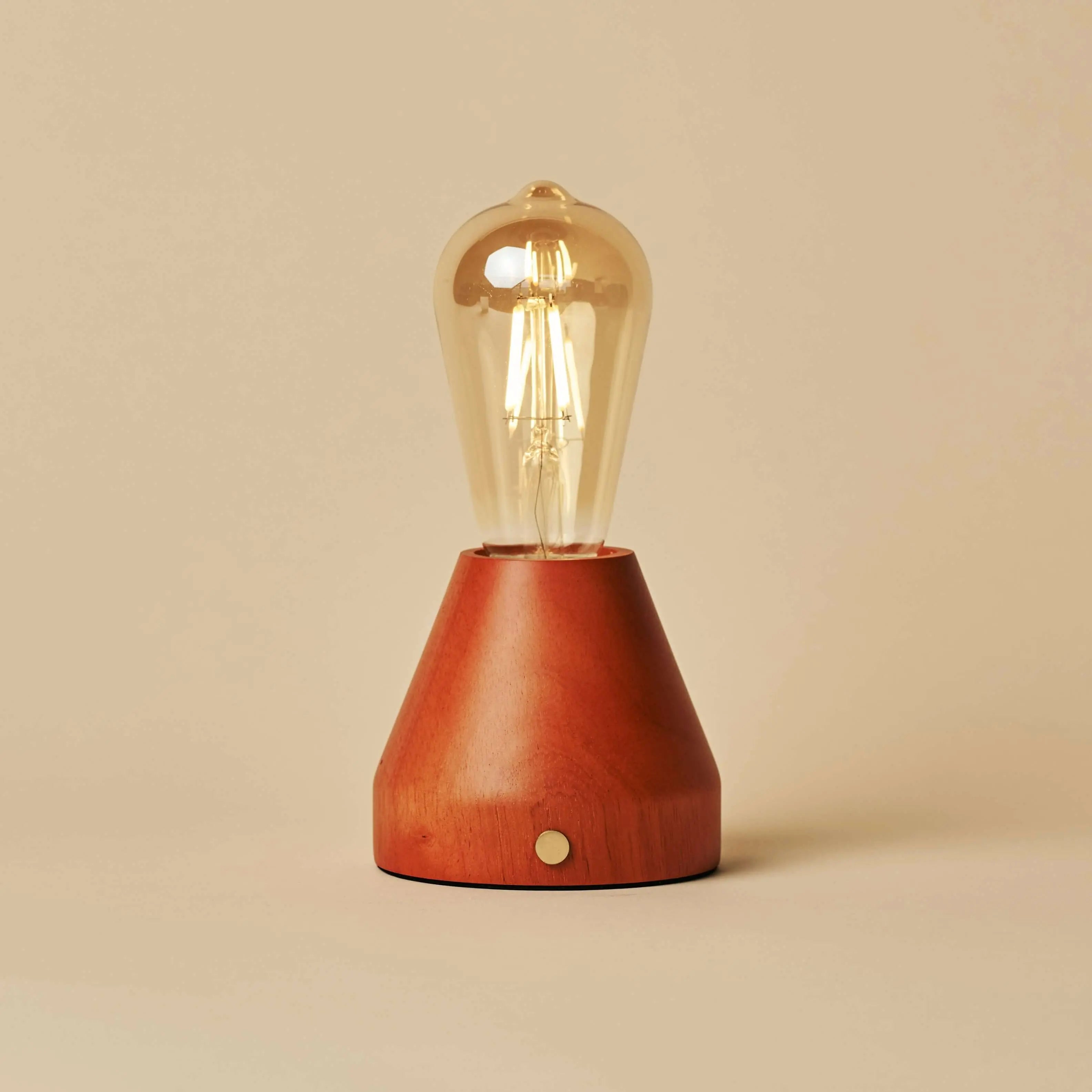 Zavi Chestnut Brown Rechargeable LED Table Lamp – Cordless, Dimmable, 100-Hour Battery Stylish model: Tavellio’s cordless LED table lamp pays homage to the classic incandescent lamp, offering effortless ambience without the hassle of cords.Rechargeable and cordless: Thanks to its rechargeable and cordless design, you can easily move the table lamp without regard to power outlets. The built-in battery is quick to recharge via the included USB cable and provides up to 100 hours of illumination, so you are always assured of adequate lighting.Easy use: The lamp is easy to operate with just one simple touch. This allows you to easily turn the lamp on or off. Dimmable function: The light intensity of the lamp can be adjusted as desired using the touch-dim button which ensures the right ambiance of your choice.Eco-friendly choice: The lamp is crafted of rubberwood, one of the most eco-friendly woods. It contributes to a circular wood industry because it is only used after the full life of the tree. Its use promotes sustainable forest management and helps reduce waste. The lamp has low power consumption.Applicability: The cordless functionality gives you the freedom to place the lamp anywhere, while charging is easy via modern technology. A versatile and trendy item which is easy to use. Specifications · · Dimensions: 10 cm Ø, 25 cm high · Material: Rubberwood, glass · Battery: 5000 mAh (10 to 100 hours, depending on use dimming function) · LED-light · Handmade, anti-slip, cordless & easy dimmable · USB-C rechargeable, cable included